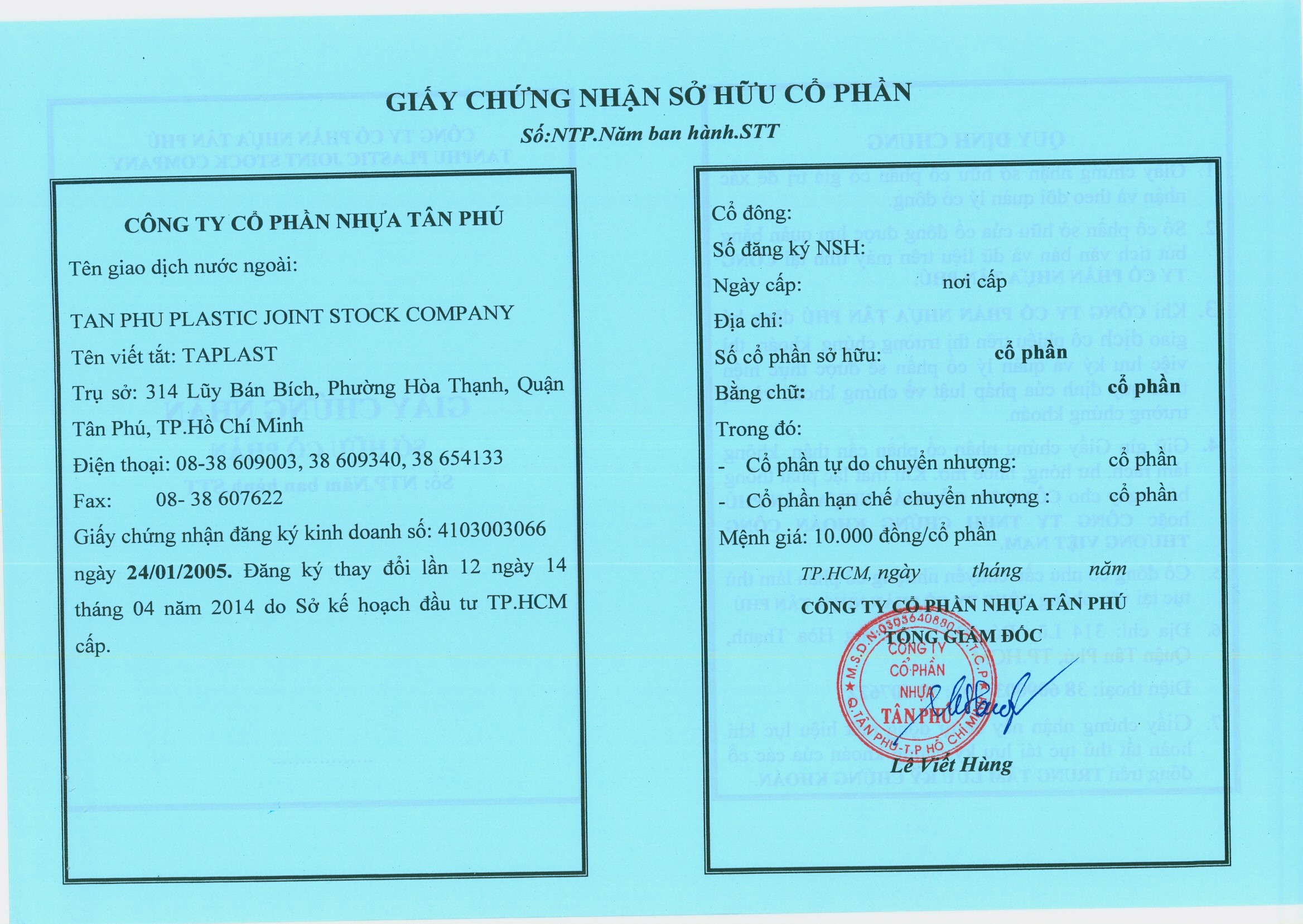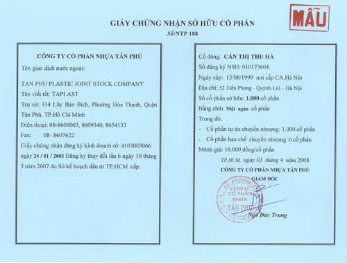 Cổ phiếu Công ty Cổ phần Tân Phú Việt Nam
